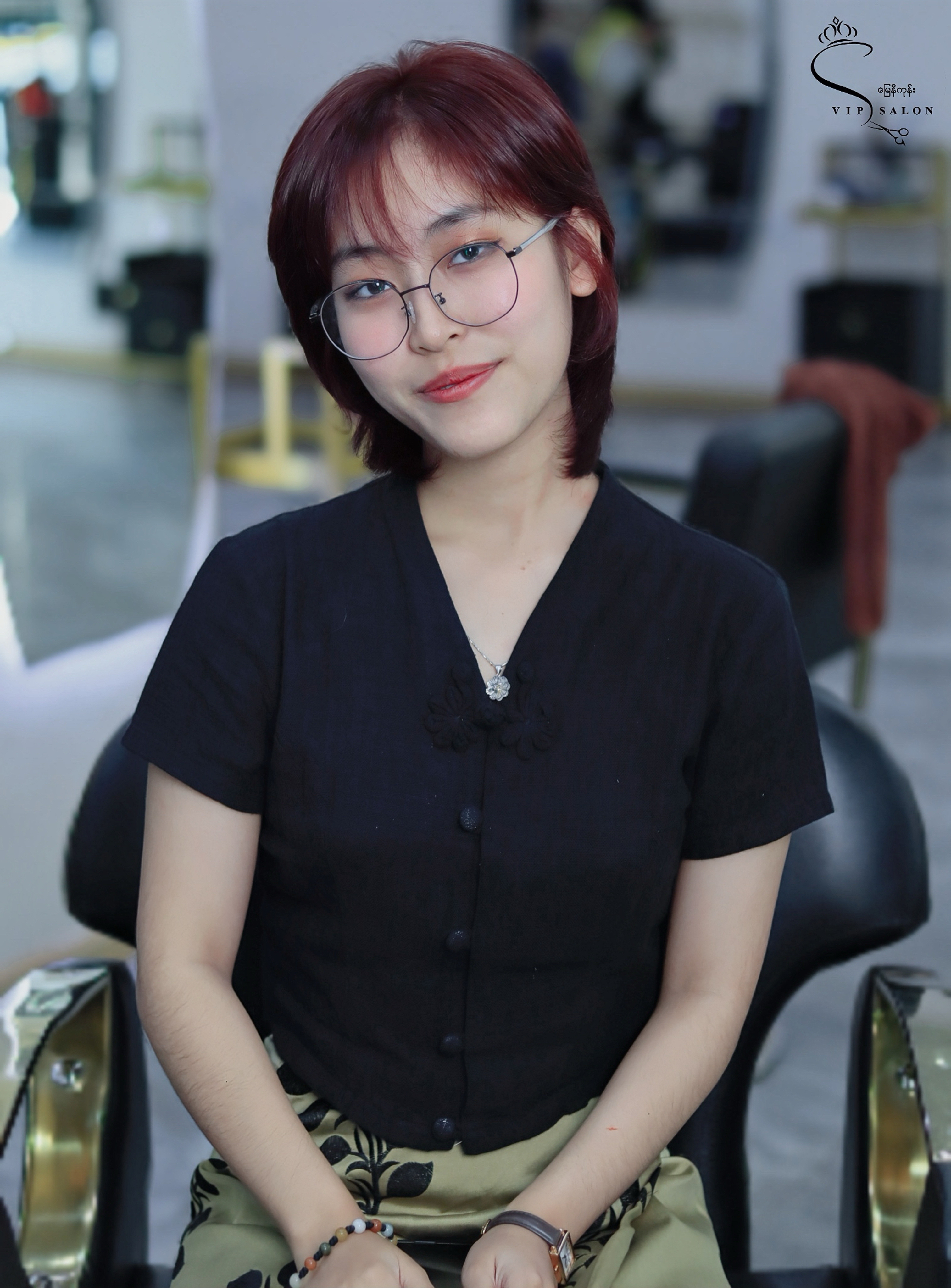 2020 ခုနှစ်တွင် VIP Hair Salonတွင် Shampooအဖြစ် စတင်လုပ်ကိုင်ခဲ့ပါသည်။ 2021ခုနှစ်တွင် Assistantအဖြစ်လုပ်ကိုင်ရင်း VIP Hair Salon မှ ဆရာများပေးသော ကောက်၊ ဖြောင့်၊ ဆေးဆိုး ပညာရပ်များကို ကျွမ်းကျင်စွာတက်ရောက်ခဲ့ပါသည်။ ဘာသာရပ်များထဲမှ Hair Coloring ပိုင်းကို စိတ်ဝင်စားခဲ့ပြီး အထူးပြုဘာသာရပ်အဖြစ် ရွေးချယ်ခဲ့ပါသည်။ 2023 ခုနှစ် နှစ်ကုန်ပိုင်းတွင် Hair Cutting ပညာရပ်ကို ထပ်မံအဆင့်မြင့်မွမ်းမံသင်ကြားပြီး 2024ခုနှစ် နှစ်အစပိုင်းတွင် Hair cut and Hair Color အထူးပြုဖြင့် စတင်လုပ်ကိုင်ခဲ့ပါသည်။ ထို့ကြောင့် ကျွန်မနှင့် Hair Service ယူမည့် ဧည့်သည်တော်များအနေဖြင့် အလှဆုံး ဖြစ်စေရပါမယ်ရှင်...